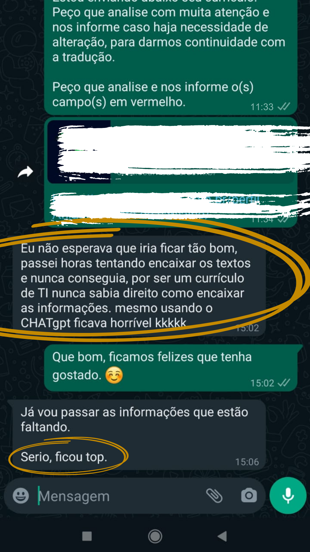 - Também trabalhamos com traduções, LinkedIn e carta de apresentação: