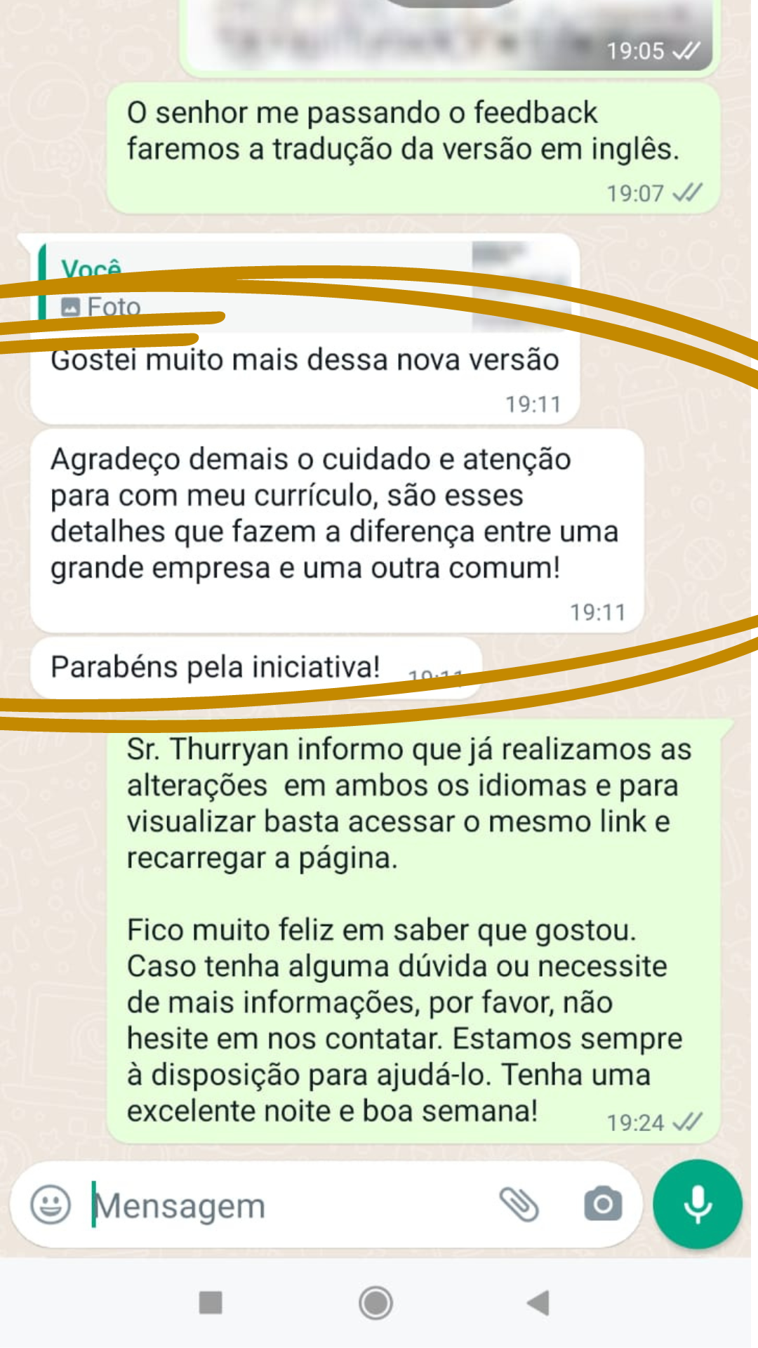 Enviaremos seu novo currículo em até 3 dias úteis apenas, e você poderá solicitar melhorias até que esteja satisfeito.