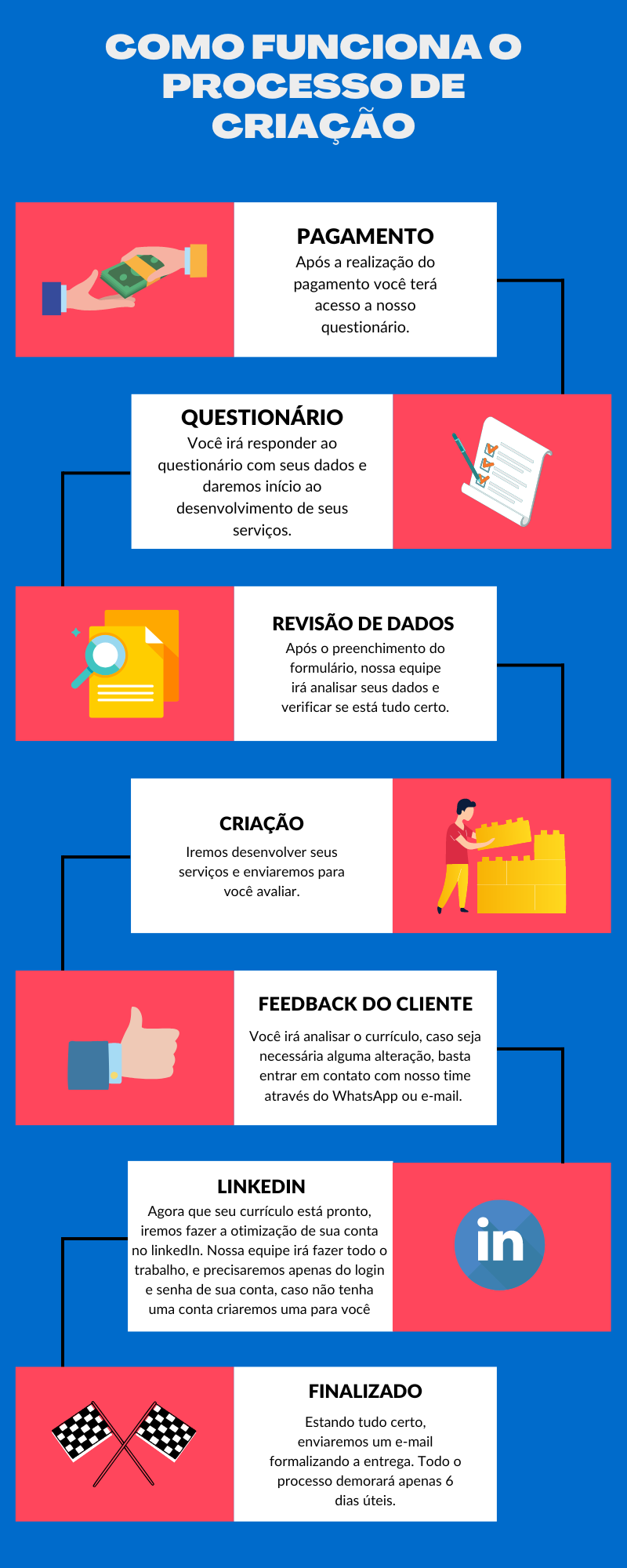 Após o processo de produção, seu currículo passará por um controle de qualidade rigoroso, verificando qualquer erro gramatical.