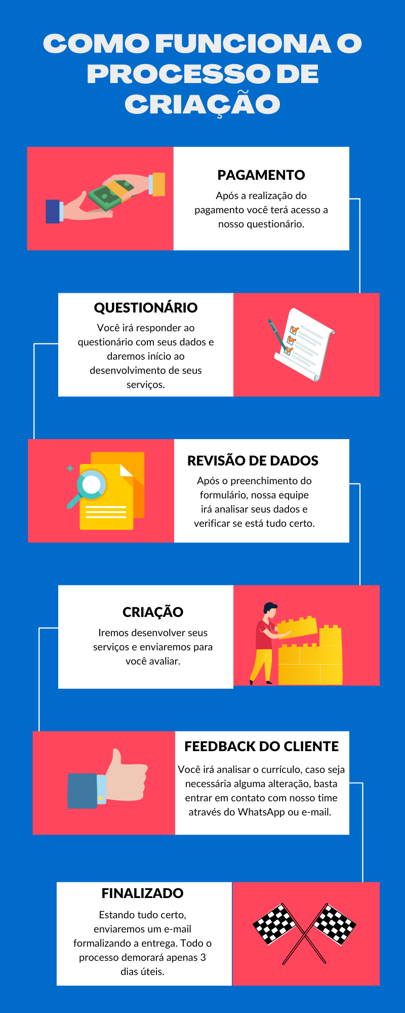 Após o processo de produção, seu currículo passará por um controle de qualidade rigoroso, verificando qualquer erro gramatical.